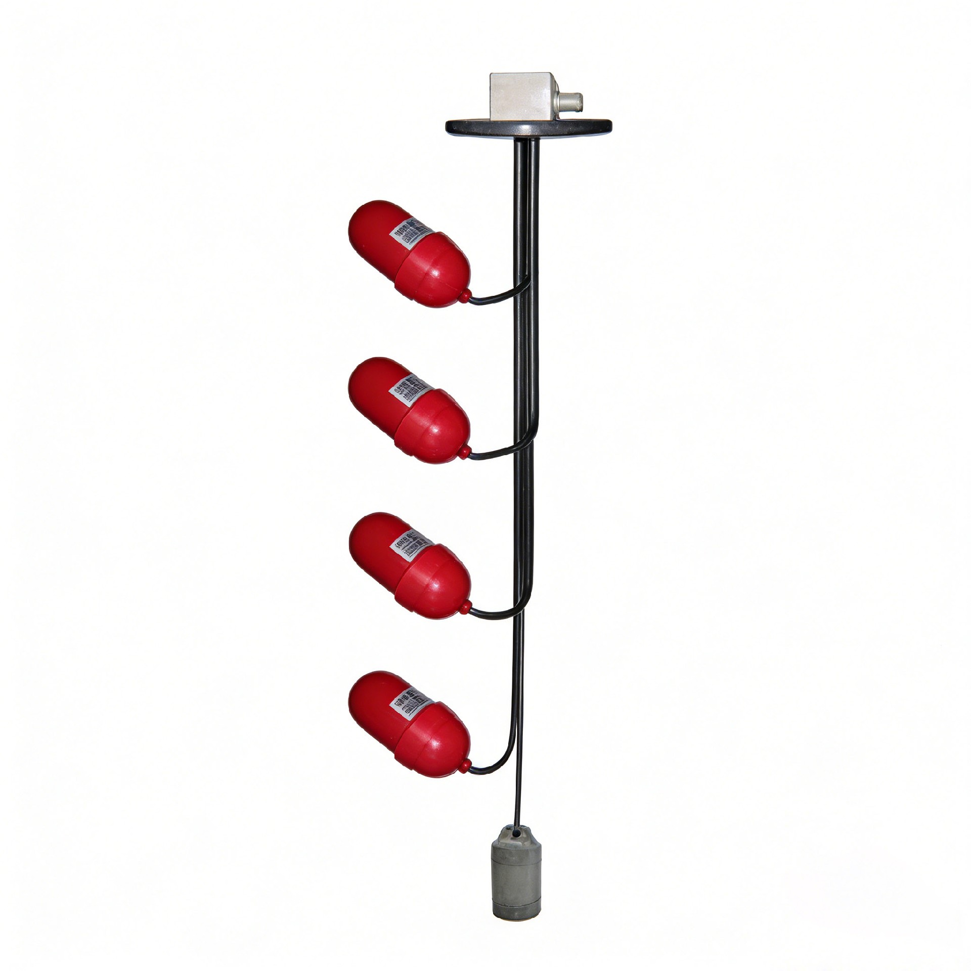 电缆式浮球液位开关,基于重力与浮力的原理设计而成。浮球随液面变化,以重锤(扎带)为原点上扬一定角度时,设置在浮球内部的开关便会有ON或OFF的接点信号输出。